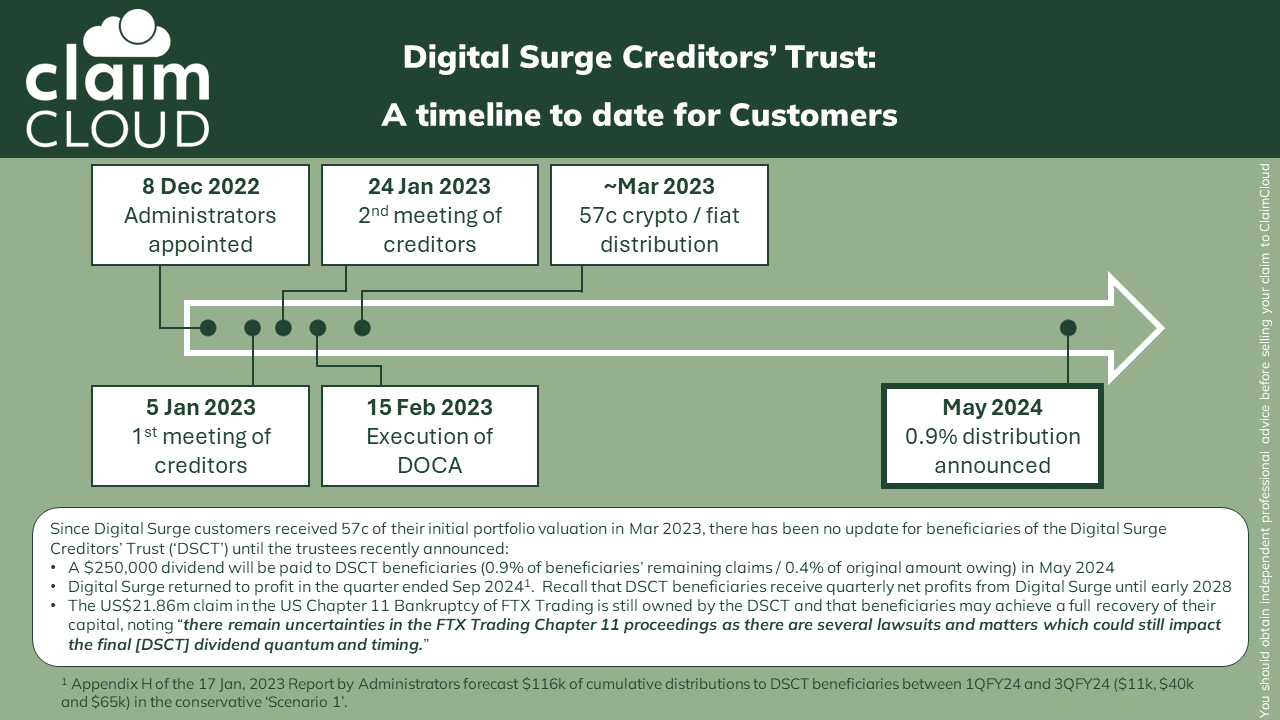 Any information provided by ClaimCloud is not intended to constitute any financial or investment advice. Before you consider selling any claim you have to ClaimCloud, you should consider obtaining financial, tax and investment advice that takes into account your financial circumstances, objectives and needs. You should also consider any information from or published by the company you have a creditor claim with or any appointed administrators or liquidators that may impact your creditor claim.