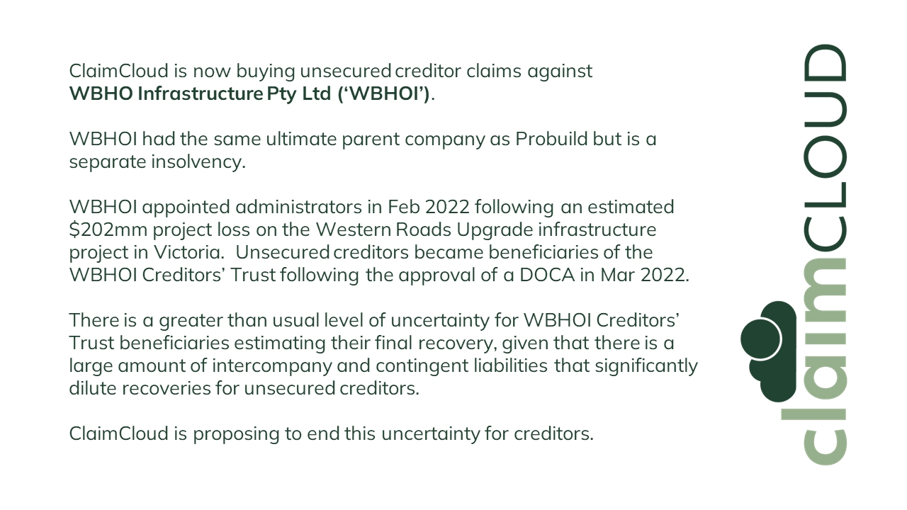 Any information provided by ClaimCloud is not intended to constitute any financial or investment advice. Before you consider selling any claim you have to ClaimCloud, you should consider obtaining financial, tax and investment advice that takes into account your financial circumstances, objectives and needs. You should also consider any information from or published by the company you have a creditor claim with or any appointed administrators or liquidators that may impact your creditor claim.