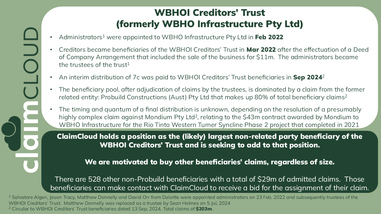 There are over 500 non-Probuild beneficiaries with a total of $29m of admitted claims.