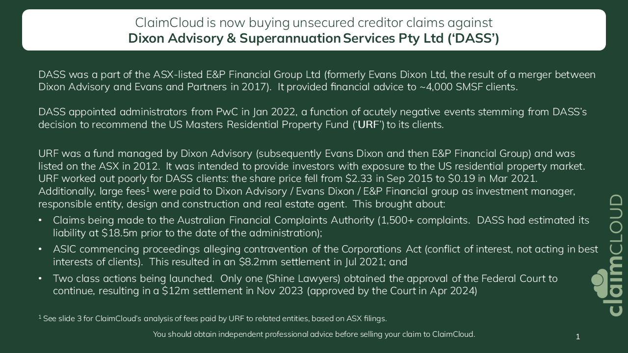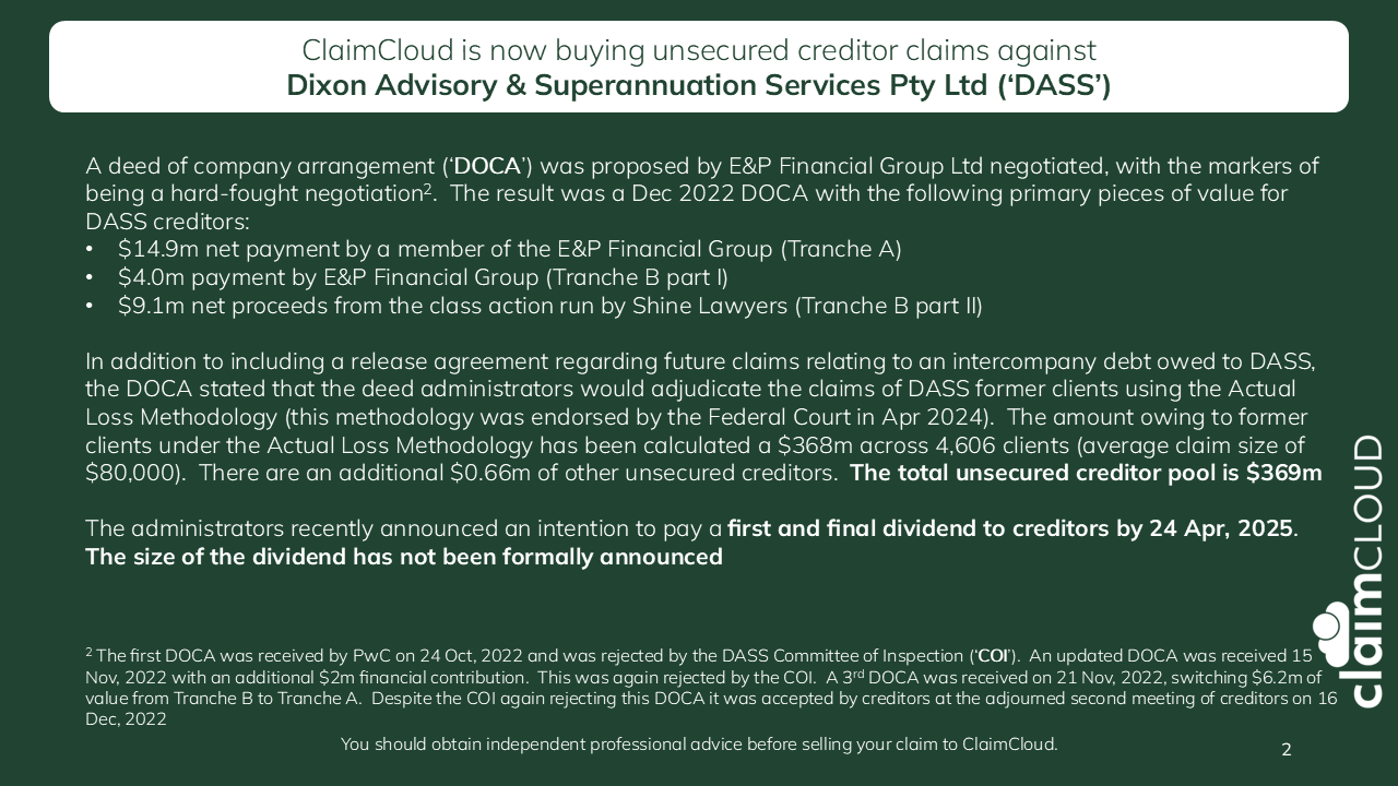 ClaimCloud is now buying ‘DASS’ unsecured creditor claims